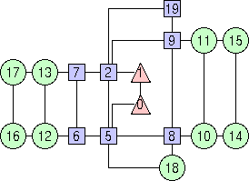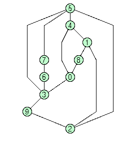 <BEGIN_OPTIONS> <ALGORITHM> 0 </ALGORITHM> <END_OPTIONS> Note: the current version of GDT allows to apply code 0 only to graphs that are biconnected and whose nodes have at most four incident edges. A graph is biconnected if the removal of one node is not sufficient to cut it into two (or more) disconnected pieces.